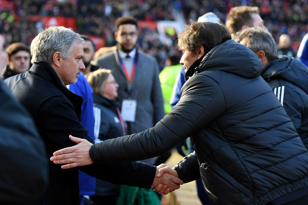 Перед началом игры состоялось рукопожатие главных тренеров команд Жозе Моуринью и Антонио Конте.