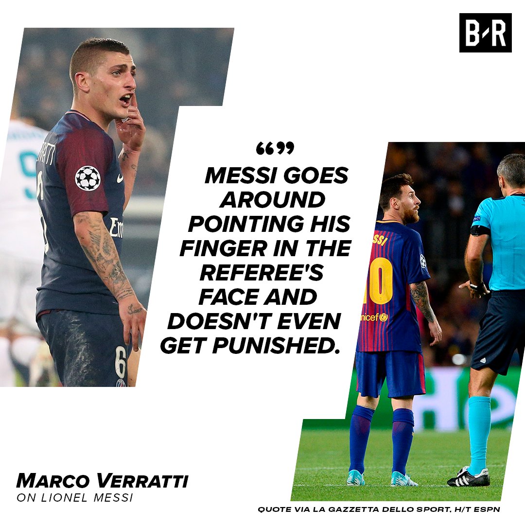Верратти — о красной карточке в игре с "Реалом": "Месси тычет пальцем в лица арбитров, а его не наказывают"
