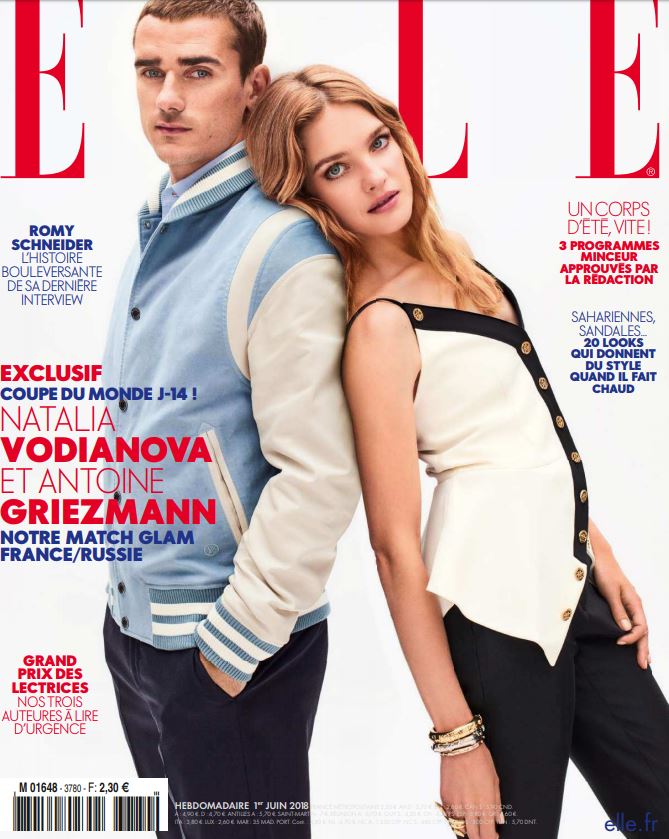 Полузащитник мадридского "Атлетико" Антуан Гризманн и российская супермодель Наталья Водянова появились на обложке французского издания журнала Elle.